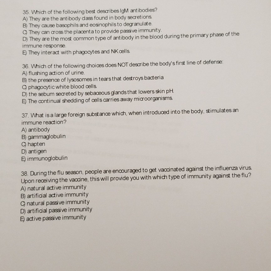 Solved 35 Which Of The Following Best Describes Igm Chegg Com